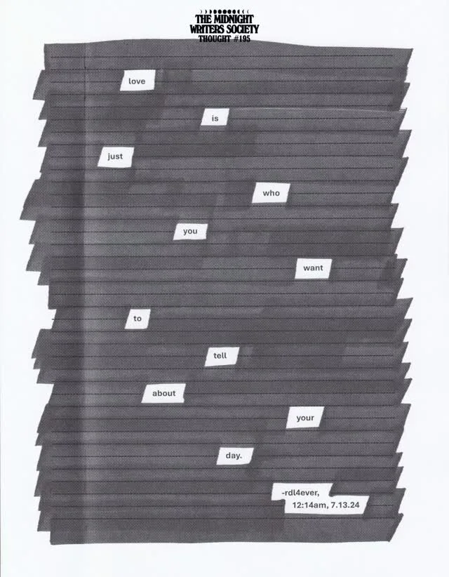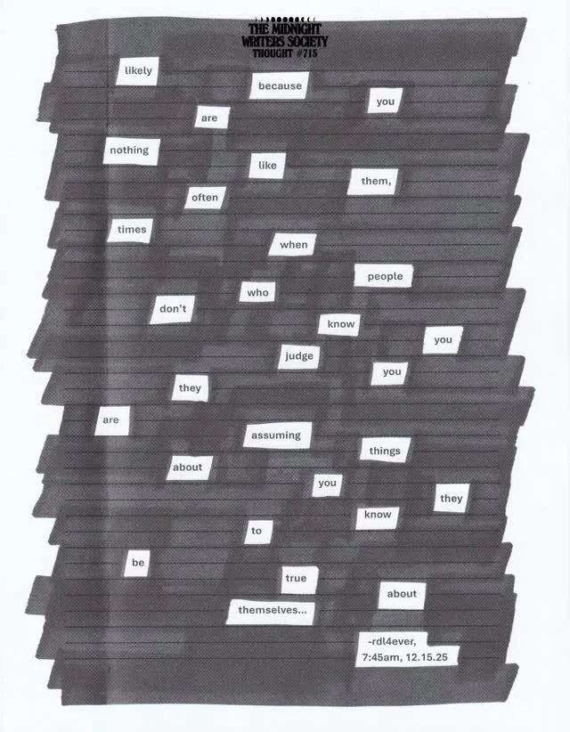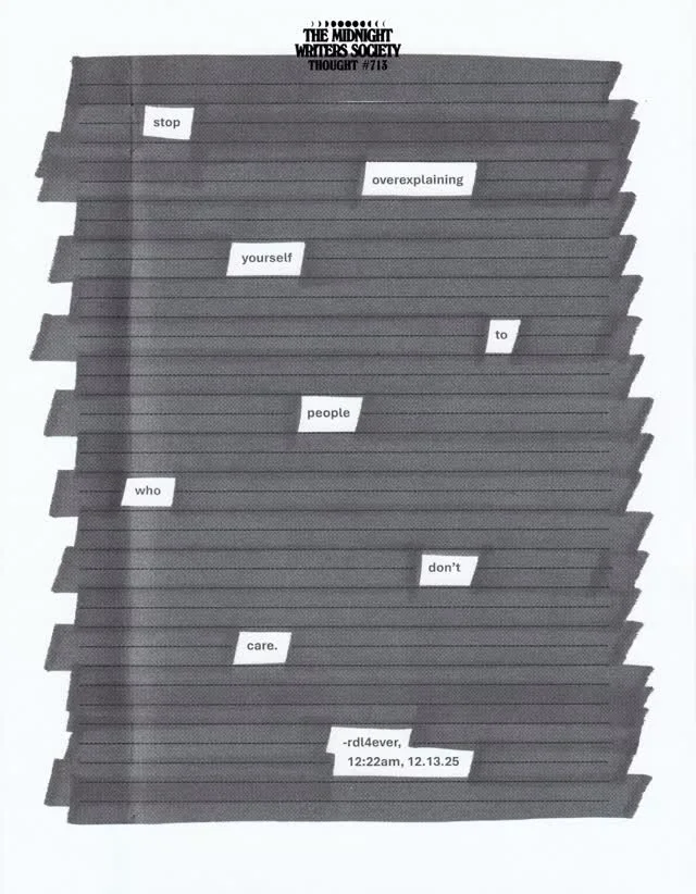 A personal project comprised of emotions and thoughts from my daily life. There will be one upload per day for the duration of 2024. I hope you will join me on this journey as I explore expression, practice honesty, learn consistency, experience growth, and attempt to let go should it be appropriate to do so.